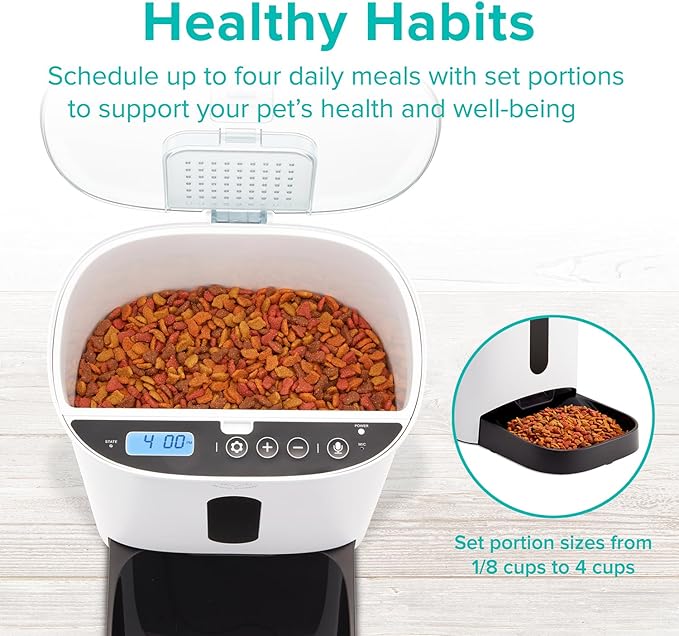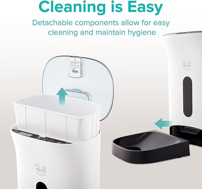 Arf Pets Automatic Pet Feeder Food Dispenser for Dogs, Cats & Small Animals – Features Distribution Alarms, Portion Control & Voice Recording – Timer Programmable Up to 4 Meals a Day