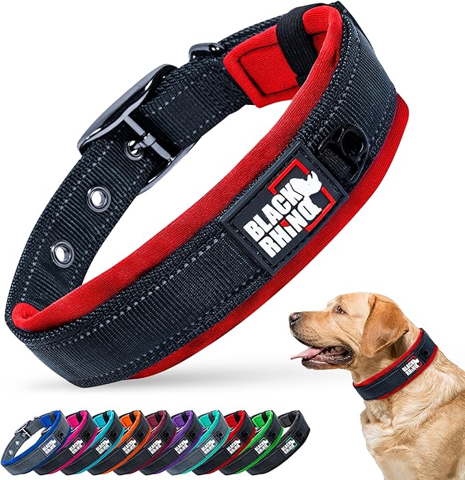 Black Rhino - The Comfort Collar Ultra Soft Neoprene Padded Dog Collar for All Breeds - Heavy Duty Adjustable Reflective Weatherproof (Small, Red/Black)