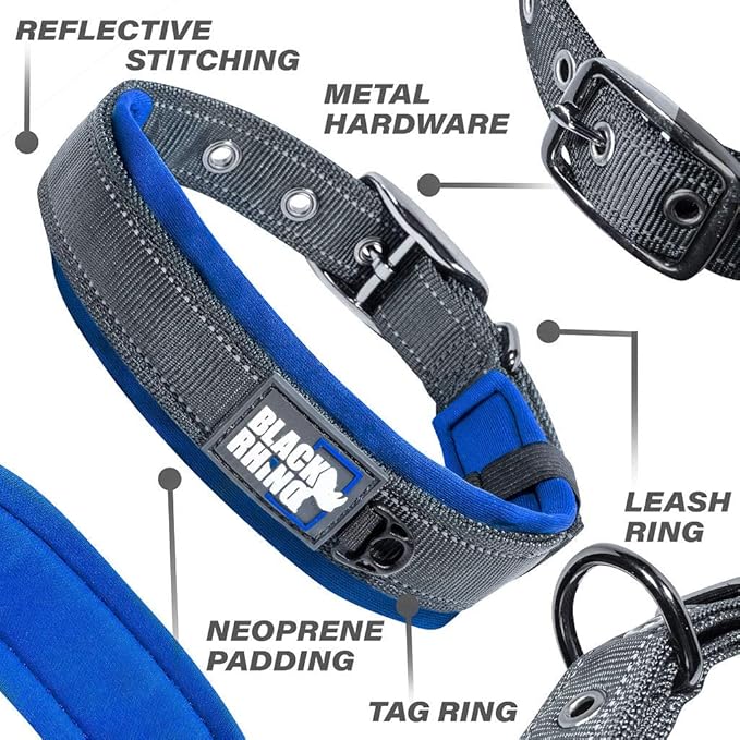 Black Rhino Dog Collars for Medium Dogs - Adjustable Reflective Heavy Duty Dog Collar with Ultra-Soft Neoprene Padding - Weatherproof, Durable, and Comfortable - Ideal for Active Dogs - Blue and Gray