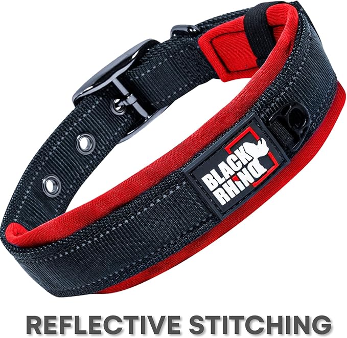 Black Rhino Large Dog Collar - Heavy Duty Adjustable Tactical Dog Collar with Reflective Stitching - 19"-23" Ultra-Soft Neoprene Padded and Weatherproof - Comfortable for Active Dogs - Red and Black
