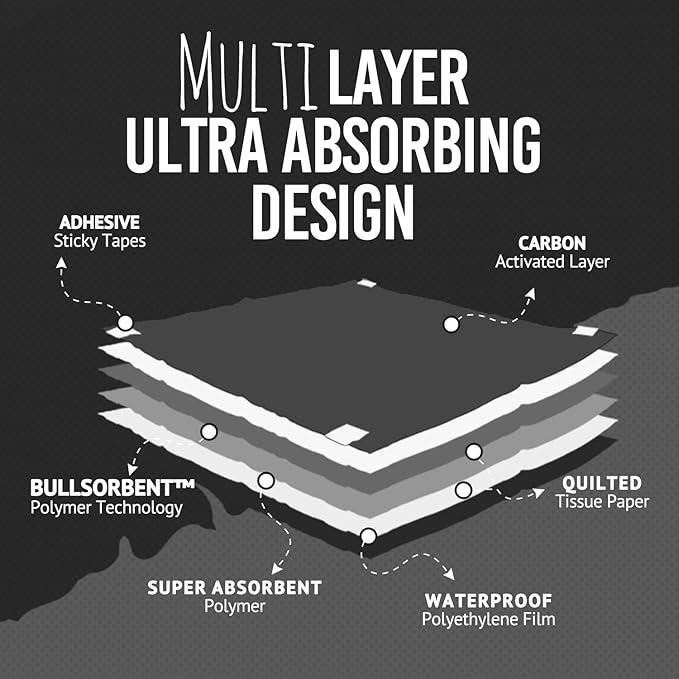 Bulldoglogy Carbon Black Puppy Pee Pads with Adhesive Sticky Tape - Large Charcoal Housebreaking Dog Training Wee Pads (24x24) 6 Layers with Extra Quick Dry Bullsorbent Polymer Tech (100-Count)