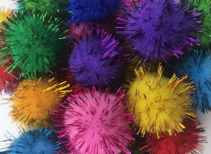 VAPKER 30 Piece Assorted Color Sparkle Balls Cat's Favorite Toy Tinsel Pom Poms Glitter