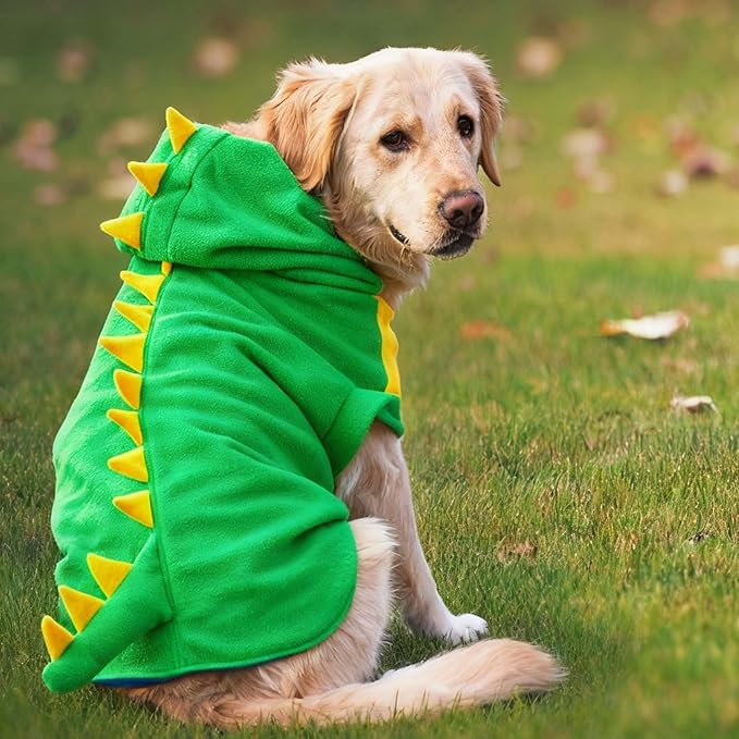 FLAdorepet Funny Halloween Large Dog Dinosaur Costume Outfits,Dog Pajamas Hoodie Winter Warm Pet Clothes Coat for Golden Retriever Pitbull (5XL, Green)