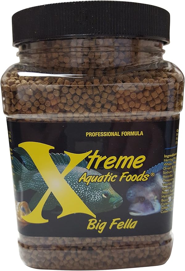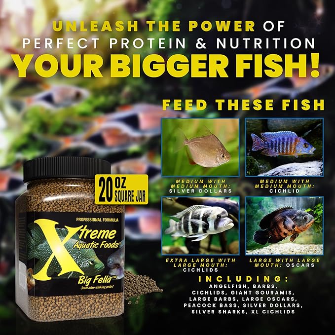 Xtreme Big Fella 3.0mm Pellets: Professional Nutrition for Medium to Large Cichlid/Community Fish - Boost Immune & Digestive Health, Color & Energy, Max Protein Fish Food β USA Farm Grown (20oz)