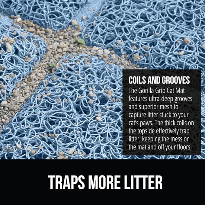 GORILLA GRIP Cat Litter Box Mat, 35x23, Water Resistant, US Designed Kitty Litter Trapping Mats, Easy to Clean, Scatter Control, Less Mess and Clean Floors, Kitten Supplies for Indoor Cats, Light Blue
