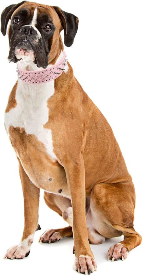 Hoot PU Leather Adjustable Spiked Studded Dog Collar 2" Wide 25 Spikes (XS(Neck 15"-18"), Pink)