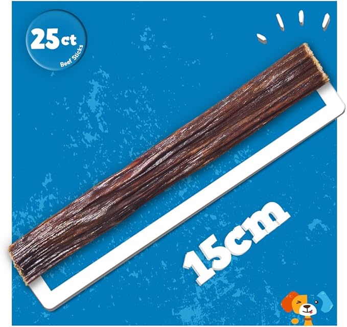 Jack&Pup 6-inch Gullet Sticks for Dogs (25 Pack) Esophagus Dog Treats, Long Lasting Chew, Beef Jerky for Dogs