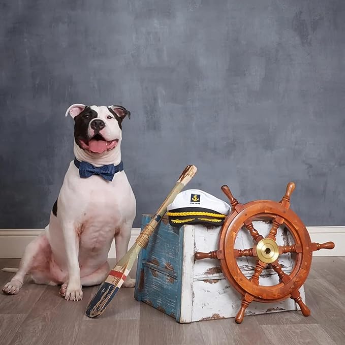Lionet Paws Boy Dog Collar with Bowtie, Comfortable Adjustable Cute Navy Blue Bow Tie Collar for Male Puppies and Cats Gift, XS, Neck 8-12 inches