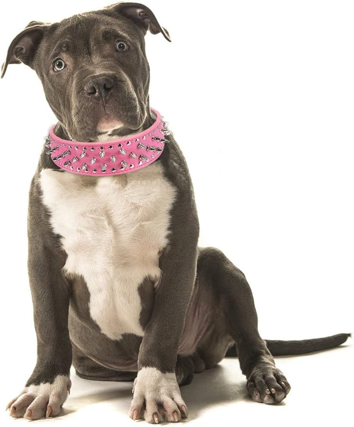 Hoot PU Leather Adjustable Spiked Studded Dog Collar 2" Wide 43 Spikes (L(Neck 21"-24"), Rose Red)