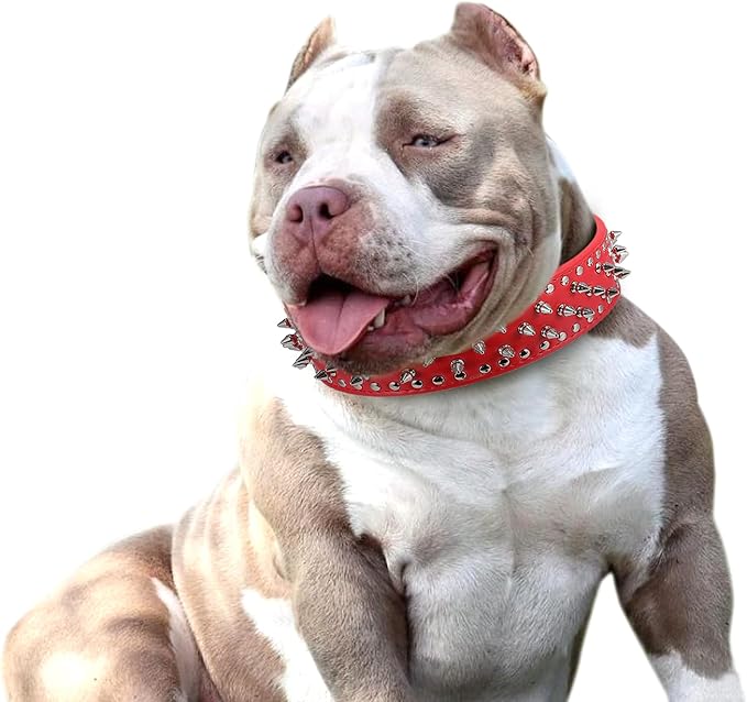 Hoot PU Leather Adjustable Spiked Studded Dog Collar 2" Wide 25 Spikes (XS(Neck 15"-18"), Red)