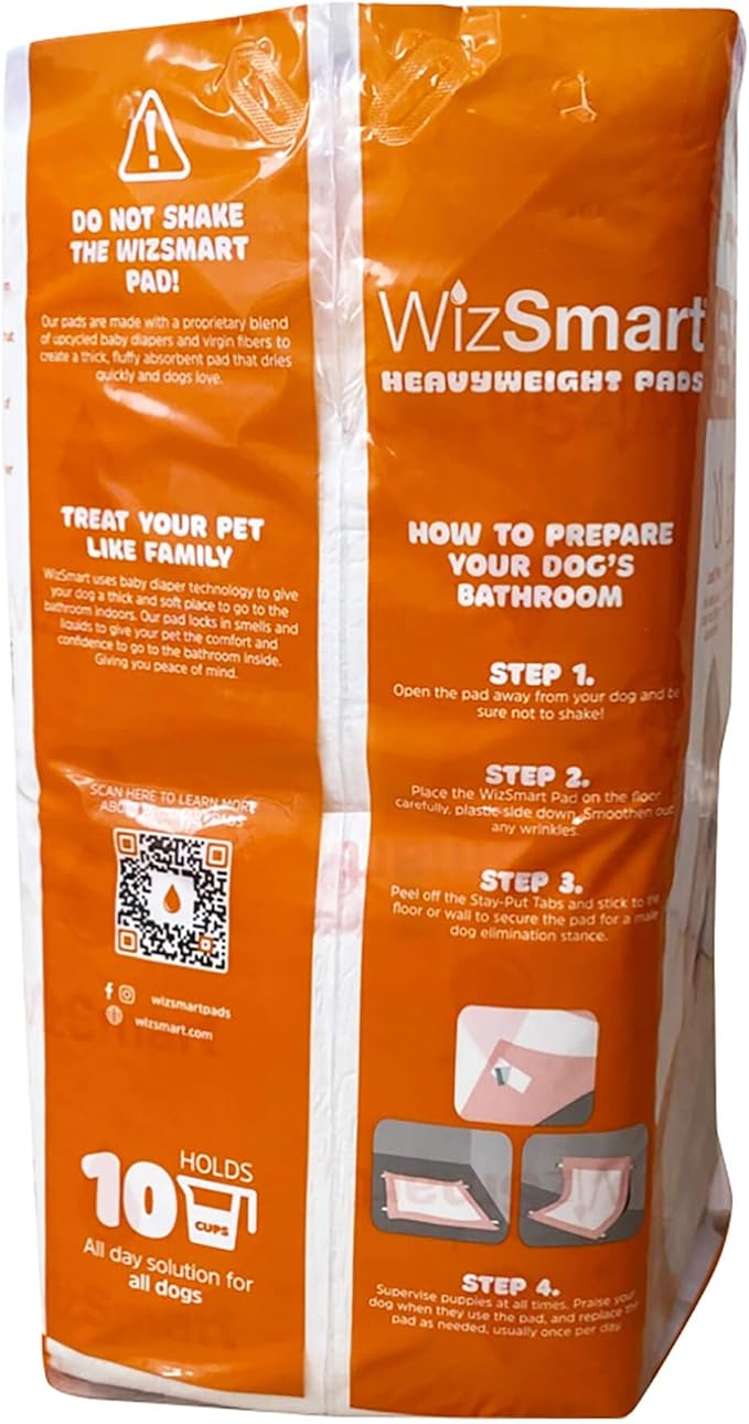 WizSmart Heavyweight Dog Pee Pads for Large Dogs, Puppies, Seniors – Ultra Absorbent, Leak Proof, Odor Control, Quick Dry, Training Pads with Stay Put Tabs – 23.5" x 22", 10 Cup Capacity