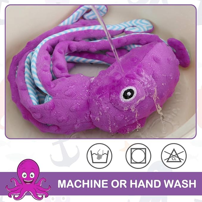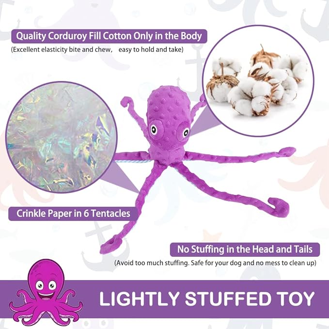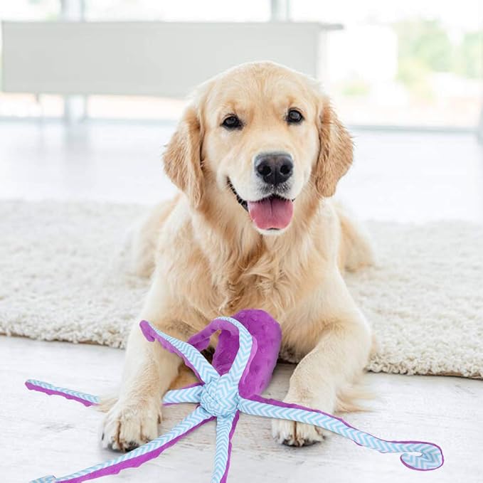 EXPAWLORER Octopus Dog Toy - Best Dog Squeaky Toys Puppy Birthday Gift Soft Stuffed Chew Toy, Crinkle Paper and Built-in Squeaker Durable Interactive Plush Toy for Small Medium Large Dogs, Purple