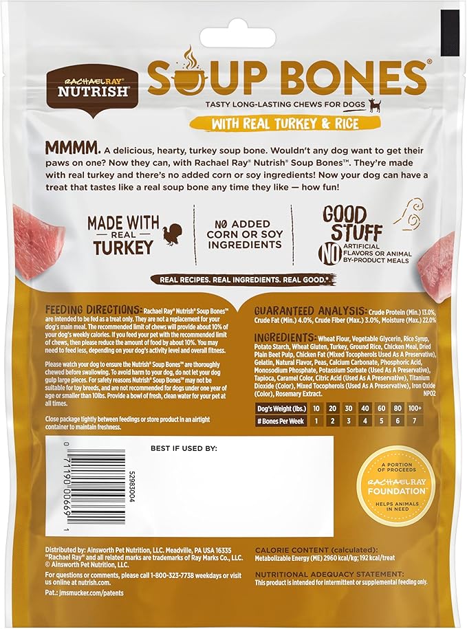 Rachael Ray Nutrish Dog Chews Soup Bones With Real Turkey & Rice, 24 Dog Treats