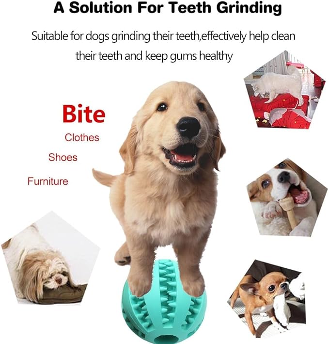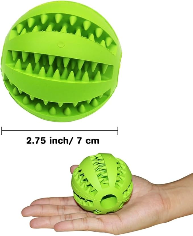 Idepet Dog Toy Ball, Nontoxic Bite Resistant Toy Ball for Pet Dogs Puppy Cat, Dog Pet Food Treat Feeder Chew Tooth Cleaning Ball Exercise Game IQ Training ball,2 Pack- Blue & Green