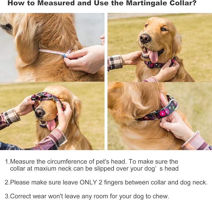 Comfortable Floral Print Martingale Dog Collars, Sun Flower, Large, Neck 17 Inch to 25 Inch, Adjustable Dog Collar Heavy Duty