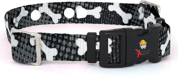 Extreme Dog Fence Replacement Containment and Training Collar Strap for Most Underground Electric Dog Fence Brands - Black Bones (Medium: 13" - 18" x 3/4")