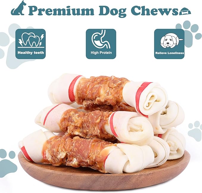 Dog Treats Chicken Wrapped Rawhide Bones for Small Dog Treats Puppy Chews Snacks Promotes Healthy Chewing Chicken Wrapped Knot 6.5" 1lb