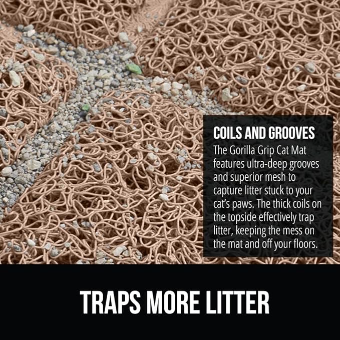 GORILLA GRIP Cat Litter Box Mat, 32x32, Water Resistant, US Designed Kitty Litter Trapping Mats, Easy to Clean, Scatter Control, Less Mess and Clean Floors, Kitten Supplies for Indoor Cats, Beige