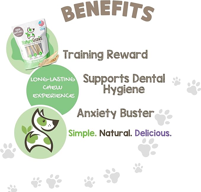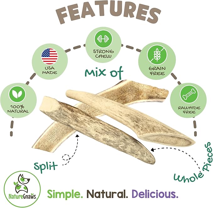 Nature Gnaws USA Deer Antlers for Dogs 4-7" (3 Count) - Mix of Split and Whole Pieces - Long Lasting for Small and Medium Breeds - Natural Dog Chew Bones
