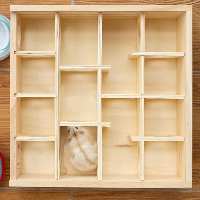 Hypeety Wooden Maze Tunnel Toy with Plastic Cover, Small Pet Animals Activity Sport Labyrinth Dwarf Hamster Play Toys Maze Tunnel Mice Wooden Funny Toy