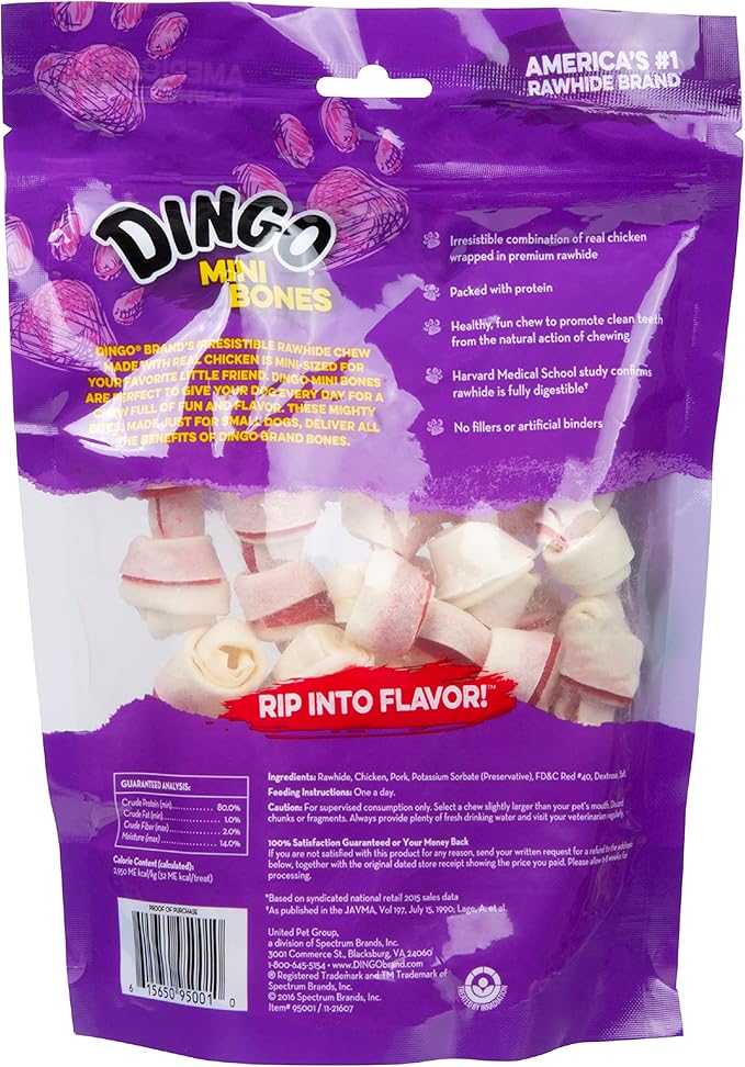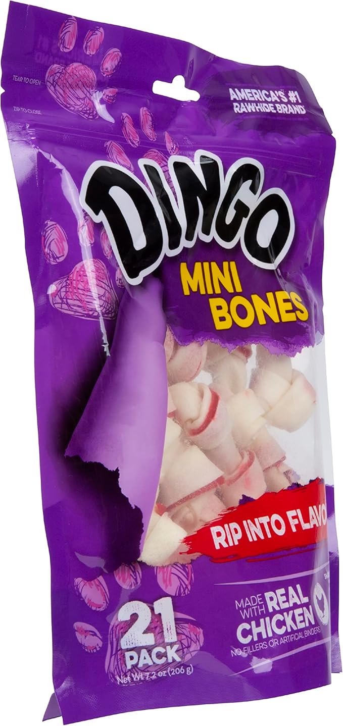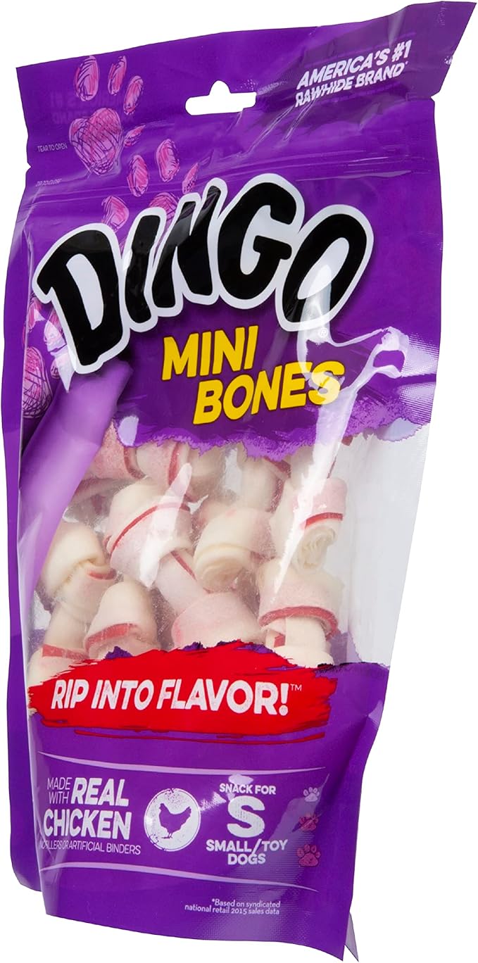 Dingo Mini Bones Rawhide for Dogs, Dog Chews Made with Real Chicken