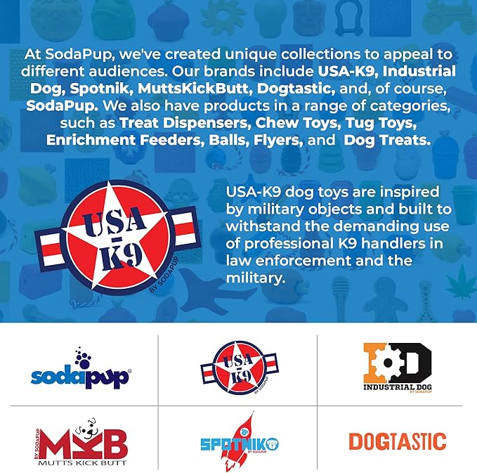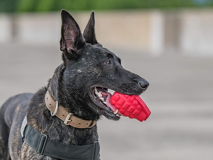 SodaPup USA-K9 Grenade – Durable Dog Treat Dispenser and Chew Toy Made in USA from Non-Toxic, Pet Safe, Food Safe Natural Rubber Material for Mental Stimulation, Problem Chewing, Calming Nerves & More