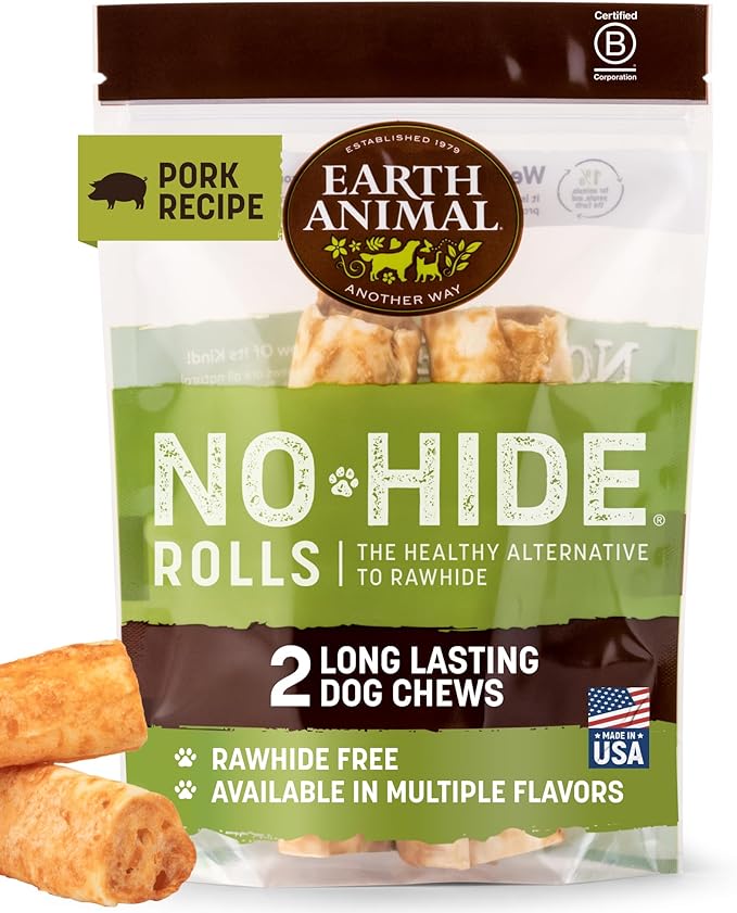 Earth Animal No Hide Chews - Long Lasting Rawhide Free Medium Dog Chews Rolls, Pork - 2 Count