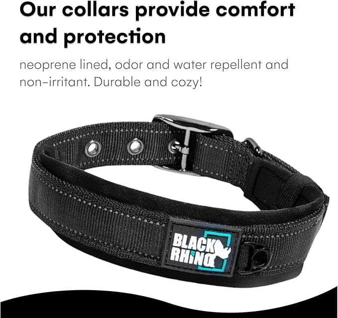 Black Rhino Dog Collar for Medium Dogs - 14-18 Inches Adjustable Reflective Dog Collar with Metal Buckle and Ultra-Soft Neoprene Padding - Heavy Duty Waterproof Collar for Active Pets - Black