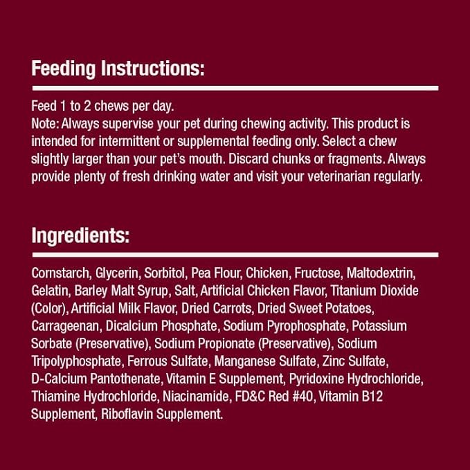About This RAWHIDE-FREE: Easy-to-digest dog chews made with wholesome ingredients. REAL CHICKEN: Made with real chicken and vegetables twisted together.... Read more