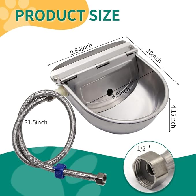 Automatic Water Feeder Trough Bowl with Pipe for Cattle Horse Goat Sheep Dog Animals Stainless Pet Livestock Tool