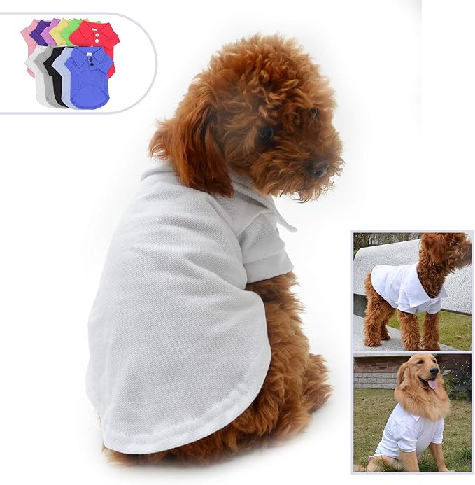 lovelonglong Basic Dog Polo Shirts Premium Cotton, Polo T-Shirts for Large Medium Small Dogs with a Two-Button Collar Blank Color White S
