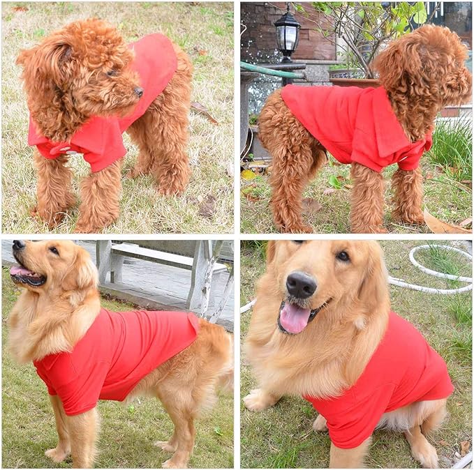 lovelonglong Basic Dog Polo Shirts Premium Cotton, Polo T-Shirts for Large Medium Small Dogs with a Two-Button Collar Blank Color Red M