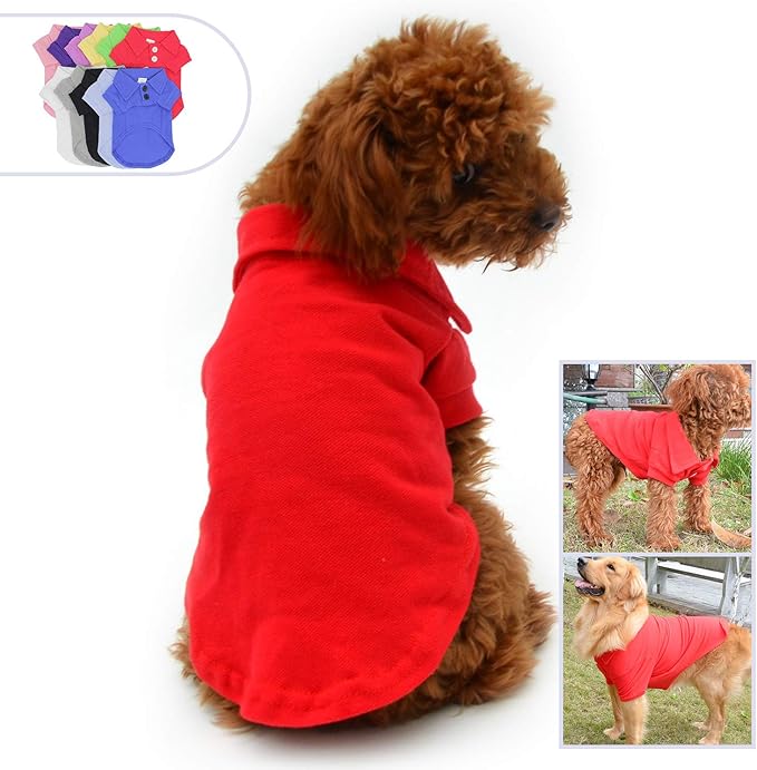 lovelonglong Basic Dog Polo Shirts Premium Cotton, Polo T-Shirts for Large Medium Small Dogs with a Two-Button Collar Blank Color Red XS