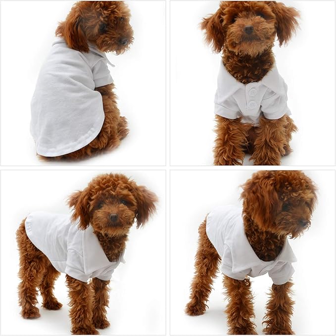 lovelonglong Basic Dog Polo Shirts Premium Cotton, Polo T-Shirts for Large Medium Small Dogs with a Two-Button Collar Blank Color (XL (-35lbs), White)