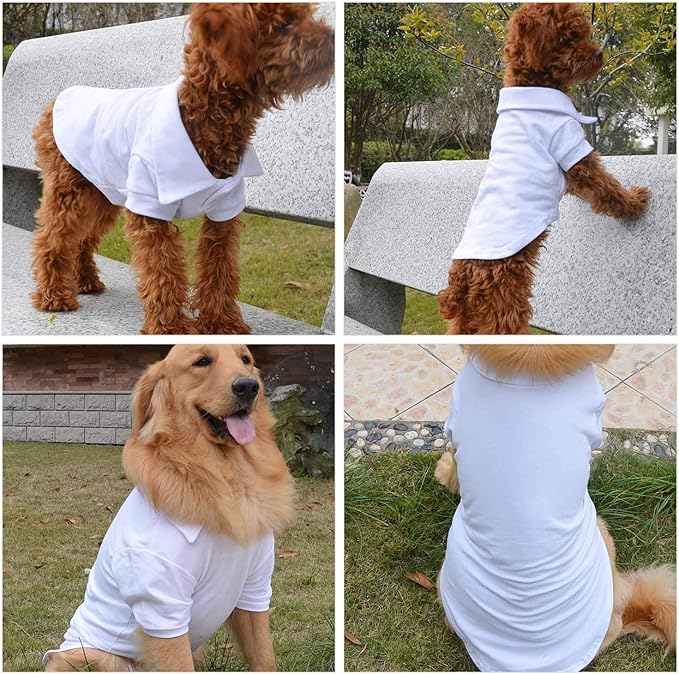 lovelonglong Basic Dog Polo Shirts Premium Cotton, Polo T-Shirts for Large Medium Small Dogs with a Two-Button Collar Blank Color White XS