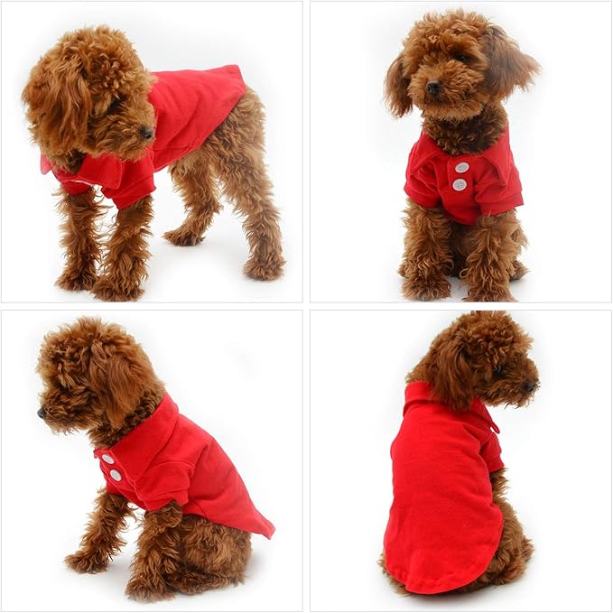 lovelonglong Basic Dog Polo Shirts Premium Cotton, Polo T-Shirts for Large Medium Small Dogs with a Two-Button Collar Blank Color Red XXL