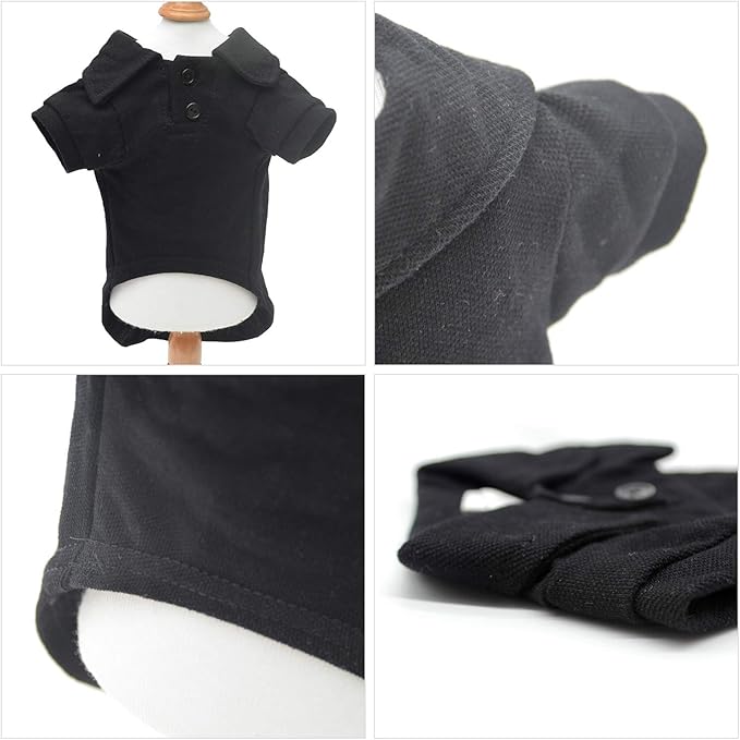 lovelonglong Basic Dog Polo Shirts Premium Cotton, Polo T-Shirts for Large Medium Small Dogs with a Two-Button Collar Blank Color Black XL