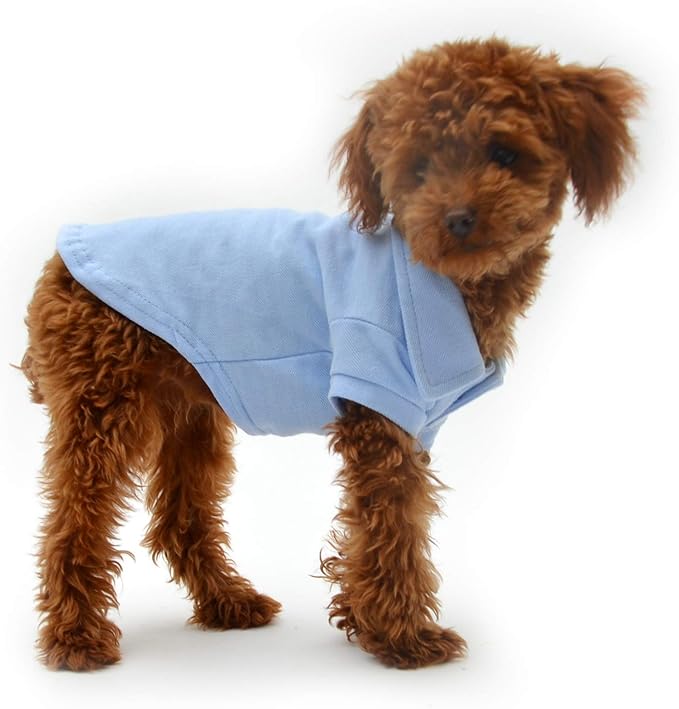 lovelonglong Basic Dog Polo Shirts Premium Cotton, Polo T-Shirts for Large Medium Small Dogs with a Two-Button Collar Blank Color Sky-Blue L