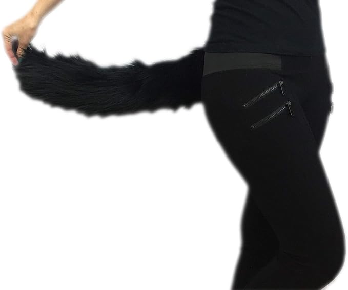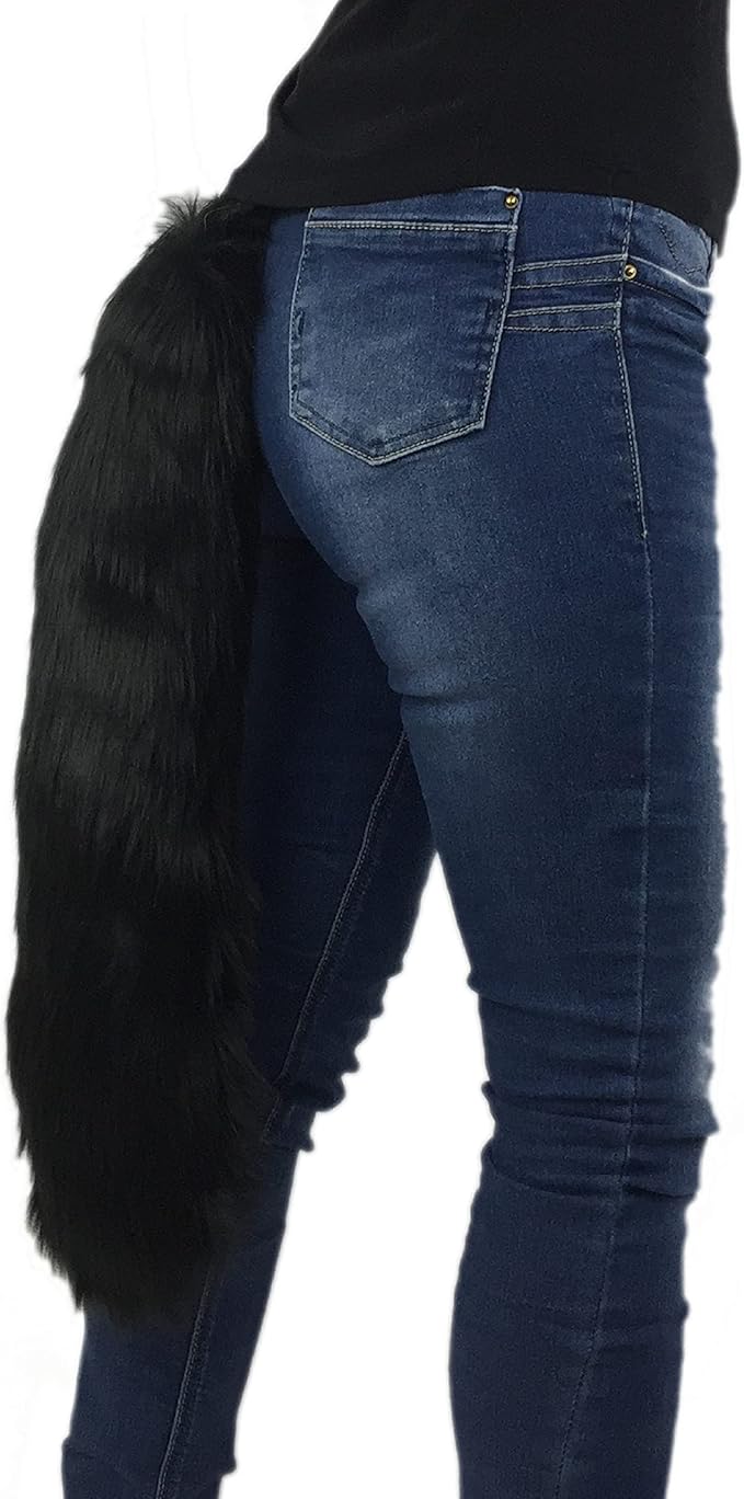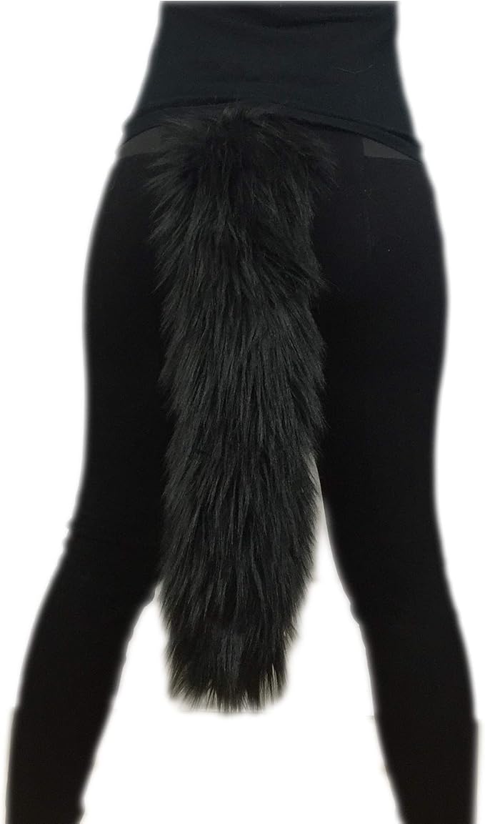 Long Faux Fur Animal Luxury Tail, Cosplay, Anime Lover, Costume Dress Up Pet Play Furry Super Soft Accessory (20", Black)
