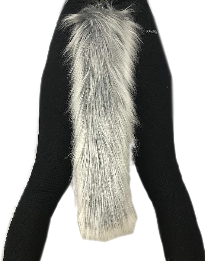 Long Faux Fur Animal Luxury Tail, Cosplay, Anime Lover, Costume Dress Up Pet Play Furry Super Soft Accessory (30", Gray Frost)