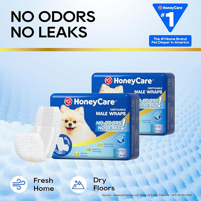 HONEY CARE All-Absorb A27 Male Dog Wrap, 50 Count, Extra Small