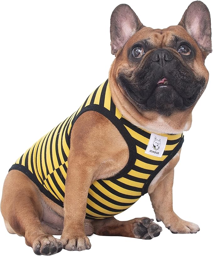 iChoue French Bulldog 100% Breathable Cotton Striped T Shirts Halloween Vest Clothes for Small Dogs Tank Tops Puppy Frenchie Pug English Boston Terrier Pitbull Yellow Black Stripes - Medium