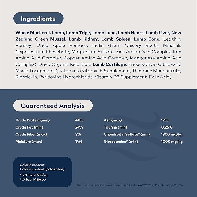- HIGH PROTEIN, NUTRIENT DENSE: Featuring wild-caught Mackerel and free-range Lamb, Organs, Bone, and New Zealand Green Mussels, this grain-free dog food delivers nutrition with a mouth-watering taste for all dogs. Gentle air dried processing retains the goodness of the raw ingredients. This food offers stimulating crunchy texture small enough for puppy food but soft enough for senior dog food.