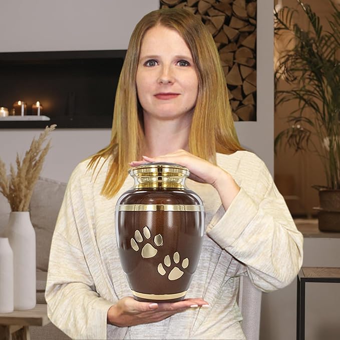 Trupoint Memorials Large Pet Urn for Dogs and Cats Ashes, Paws Print Brown Cremation Urns for Pets up to 122 lbs