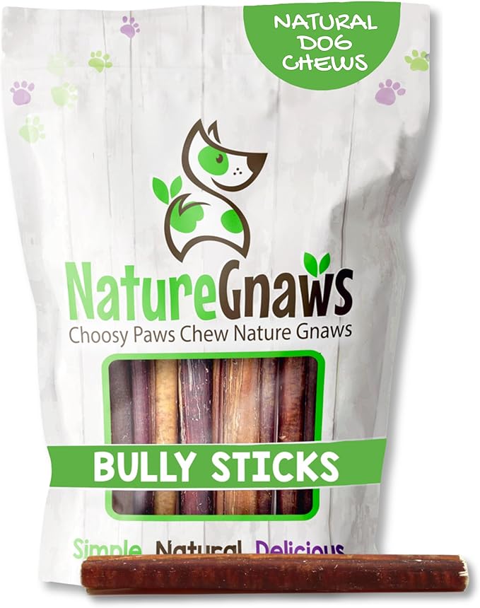 Nature Gnaws Large Bully Sticks for Dogs 5-6" (3 Count) - Thick Long Lasting for Aggressive Chewers and Large Dogs - Natural Beef Dog Chew Bones