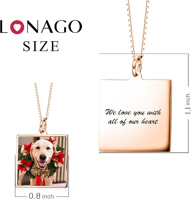 LONAGO Full Color Photo Picture Personalized Necklace Custom Etched Dog Tag Image Pendant with Message Name