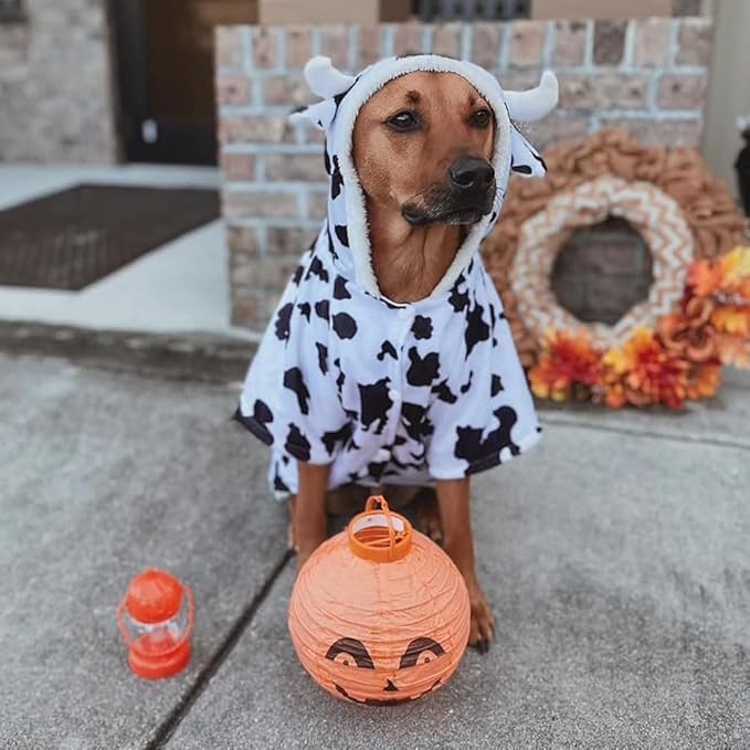FLAdorepet Halloween Dog Cow Costume Outfits for Small Medium Large Dog Winter Fleece Puppy Jacket Coat Hoodie Funny Dog Clothes Golden Retriever (3XL,White)