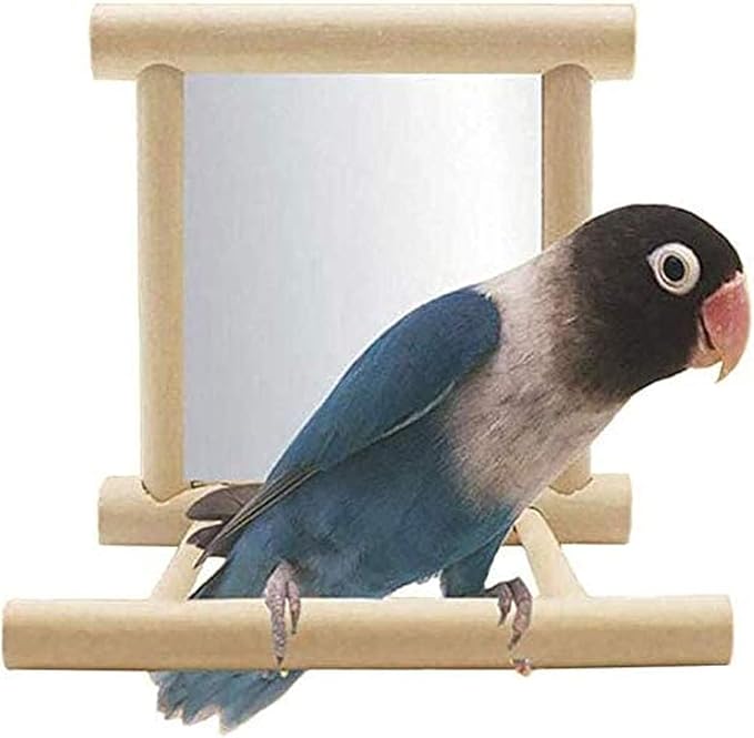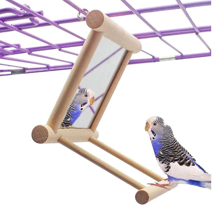 Bird Mirror Parakeet Mirror Perch Stand Wooden Swing Mirror Toy Cage Accessories for Parrots Budgies Parakeets Cockatiels Lovebirds Finches
