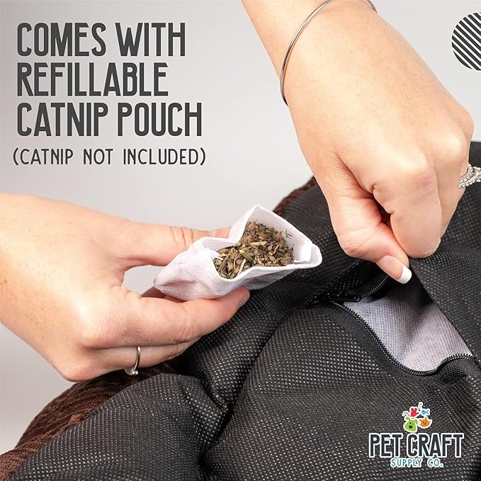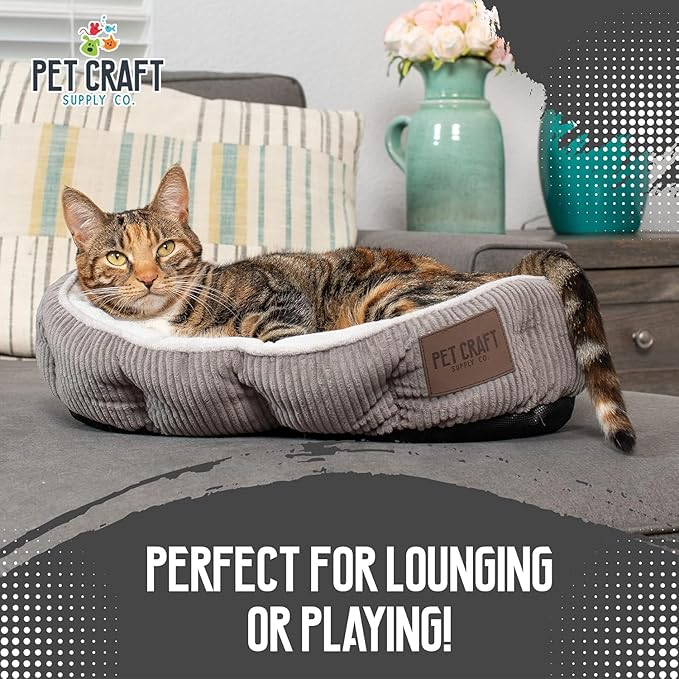 Pet Craft Supply Cat Bed for Indoor Cats - Kitten Bed - Machine Washable - Ultra Soft - Self Warming - Refillable Catnip Pouch,Grey,19x14x5 Inch (Pack of 1)