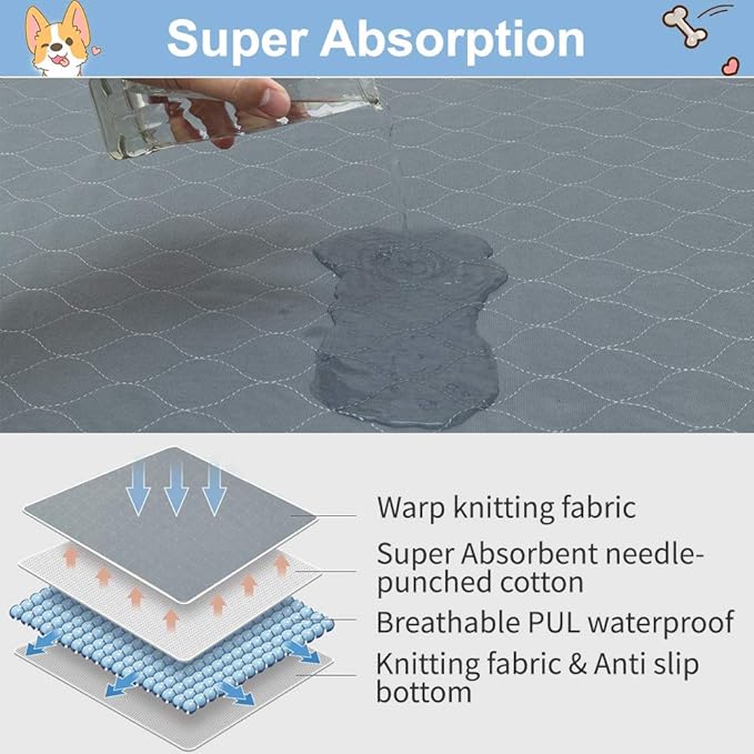 KOOLTAIL Washable Pee Pads for Dogs - Waterproof Dog Mat Non-Slip Puppy Potty Training Pads, Reusable Whelping Pads for Dog Crate PlayPen